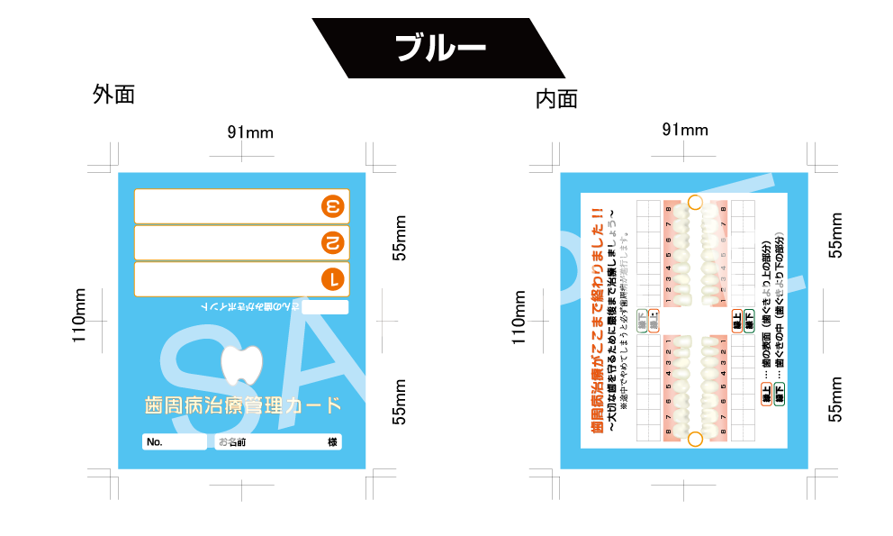 歯周病治療の管理を行うカードです。治療の進行度がわかるので中断抑止に効果的です。