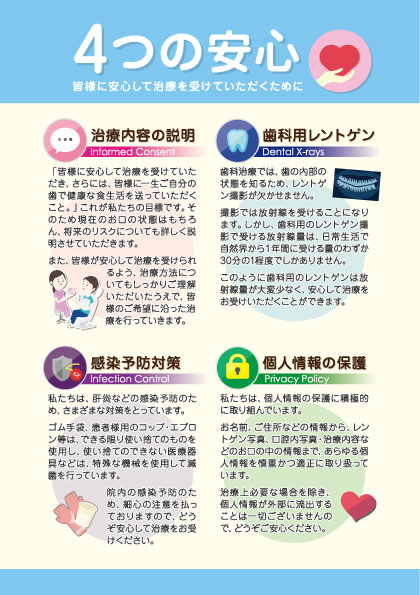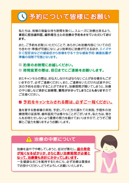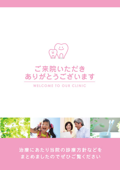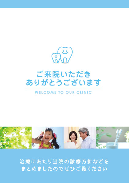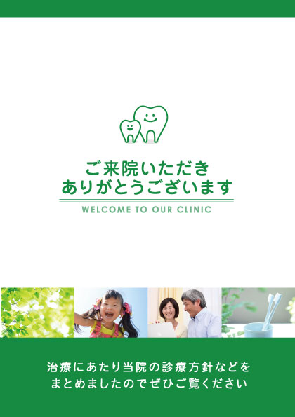 初診時に患者さんにお渡しする資料をまとめたパッケージパックです。表紙含め8ページの構成となっています。