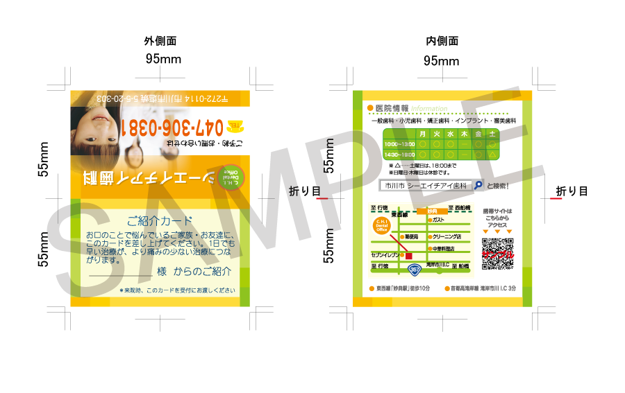 サイズ:パンフレット縦165mm×横100mm、カード縦106mm×横85mm(折る前のサイズです)