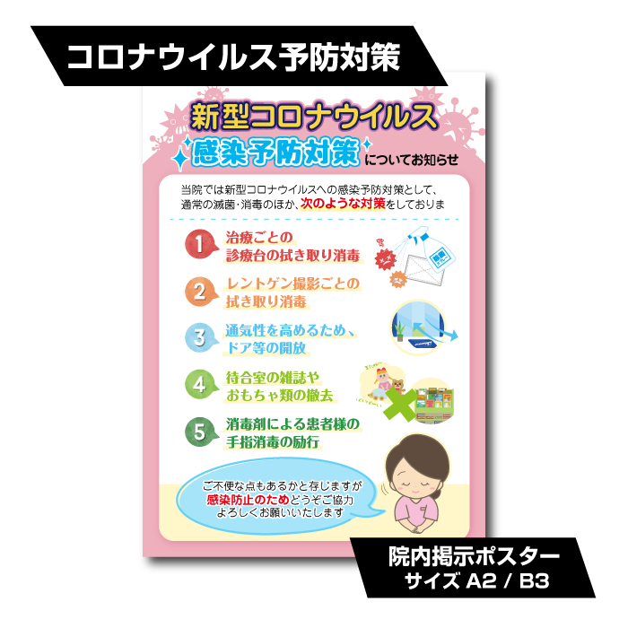 【院内掲示ポスター】コロナウイルス予防対策(サイズA2 / B3)